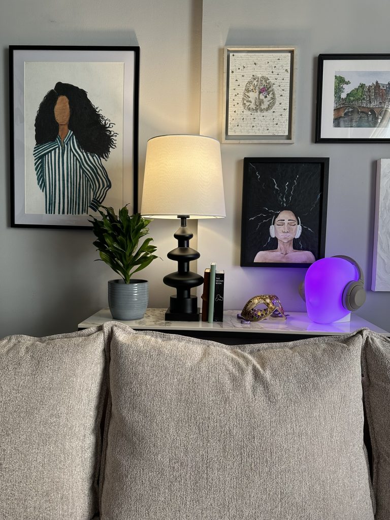 The design features a mix of vibrant colors, natural materials, and diverse textures, creating a warm and inviting atmosphere.