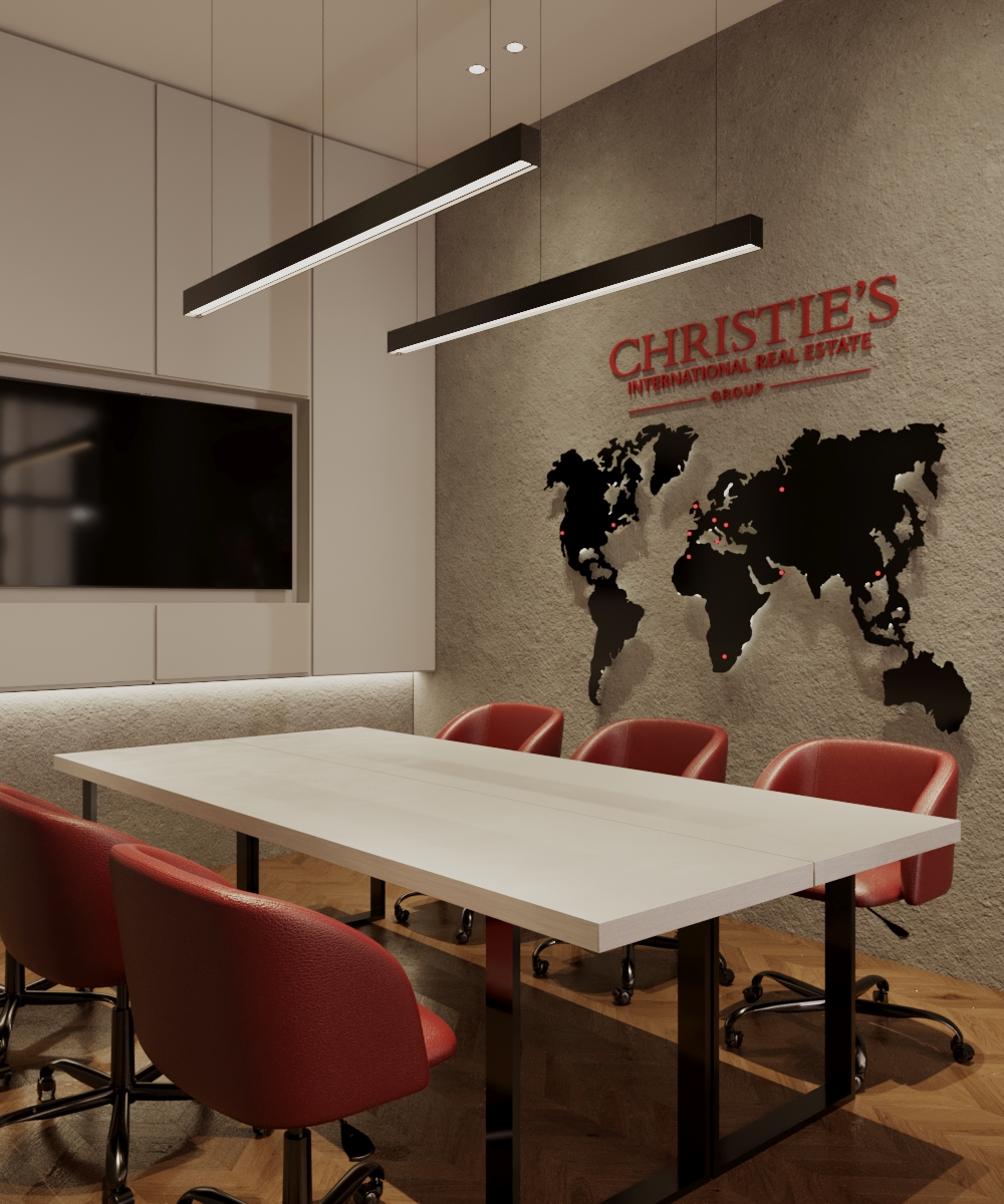 Christie’s Real Estate is part of a historic network spanning 50 countries, Christie’s International Real Estate Dubai is the U.A.E.’s premier luxury real estate firm. This design aimed to elevate the functionality, aesthetic appeal, and overall efficiency of Christie’s Real Estate office, providing a welcoming and professional atmosphere for clients and employees alike.